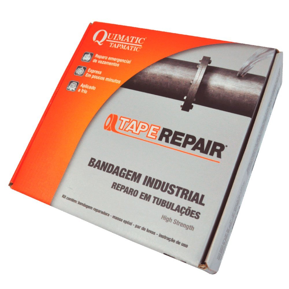 A bandagem industrial TAPEREPAIR high strength da Quimatic Tapmatica é uma solução de ponta para reparo em tubulações. De fácil aplicação, o reparo é realizado em até 5 minutos, com cura funcional em 30 minutos. O TAPERAPAIR é uma bandagem de fibra de vidro revestida com resina de poliuretano ativada com água doce ou salgada.
