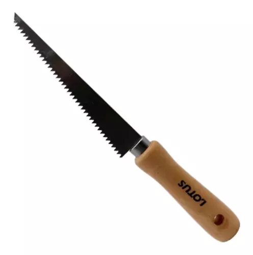 Serrote tipo faca, para uso em gesso e drywall, modelo profissional, cabo de madeira ergonômico, com travas super vivas, para facilitar o corte de gessos e cartonados.